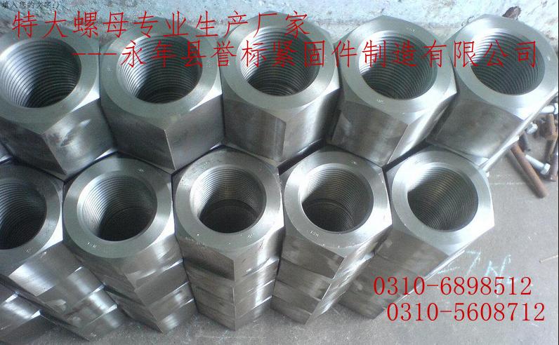 永年譽標緊固件公司,生產:大螺母、特大螺母、超大螺母、異型螺母、特大圓螺母、特大方螺母等各種螺母,聯系電話:0310-6898512或15100051712